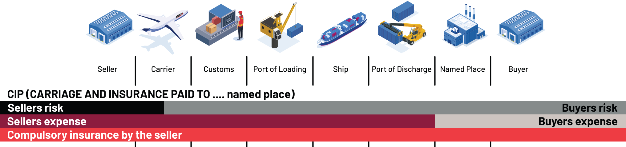 As mentioned above, CIP is short for Carriage and Insurance Paid To. It is an International Commercial Trade Term (Incoterm) agreed upon by both the buyer and the seller.
